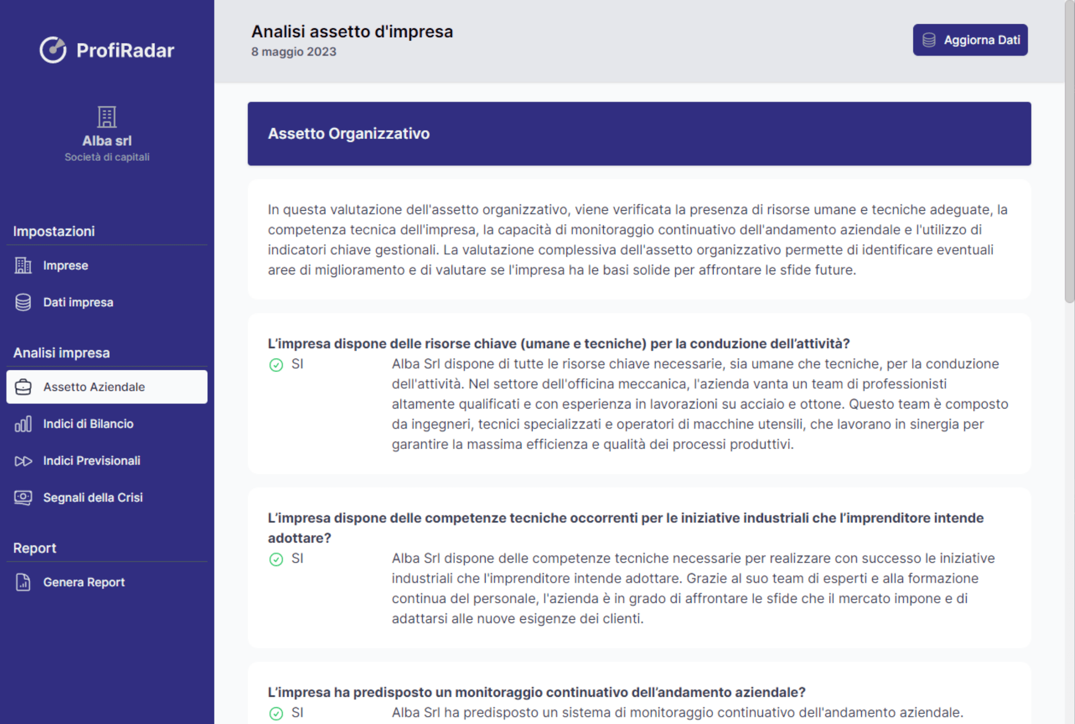 ProfiRadar ti consente di creare report dettagliati e personalizzati, pronti per essere condivisi o presentati. Modifica e adatta i contenuti per adattarli alle tue necessità aziendali.