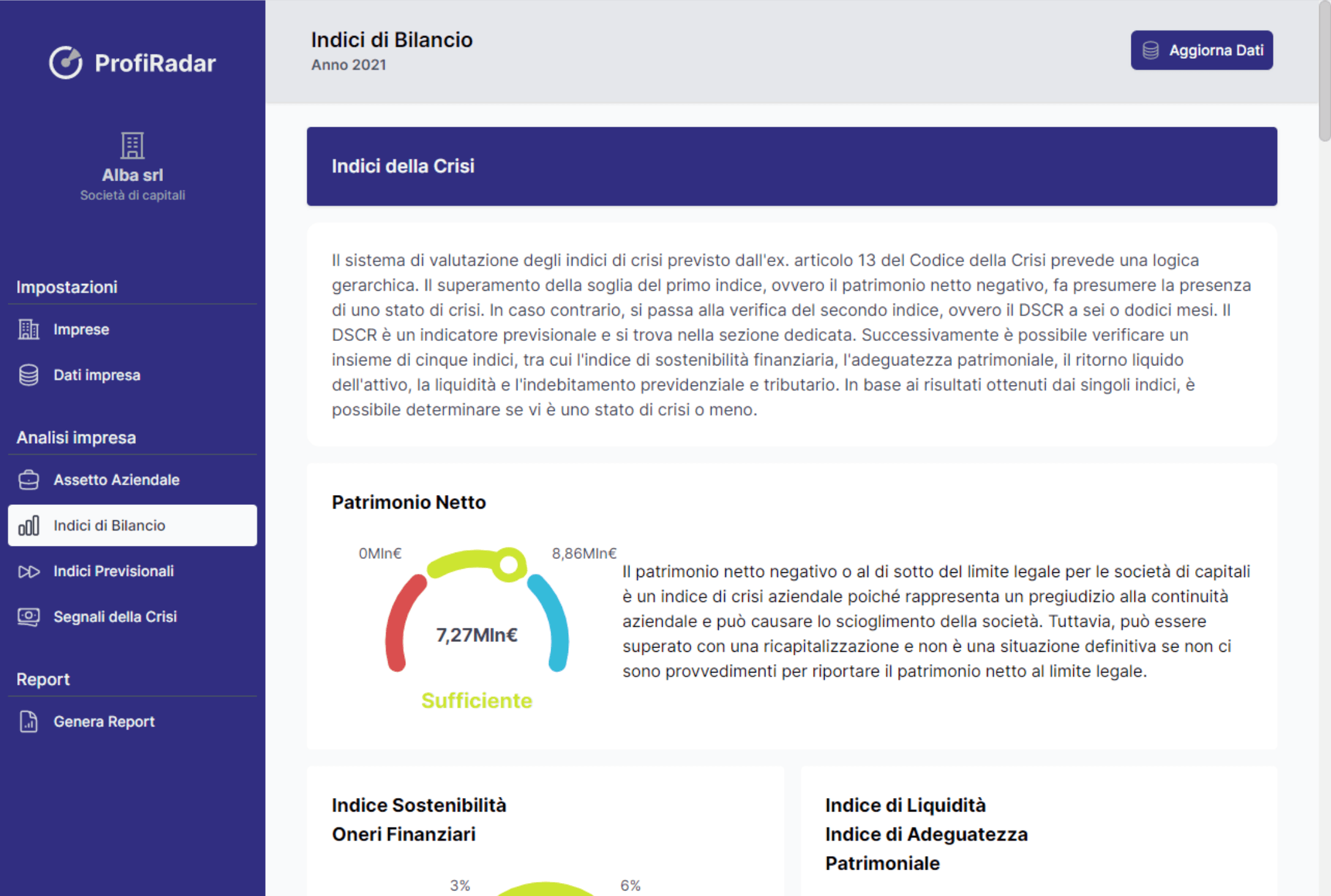 ProfiRadar è un software gratuito per l'analisi della crisi d'impresa, ideato per aiutare imprenditori, aziende e commercialisti a rilevare e affrontare tempestivamente situazioni di crisi aziendale.